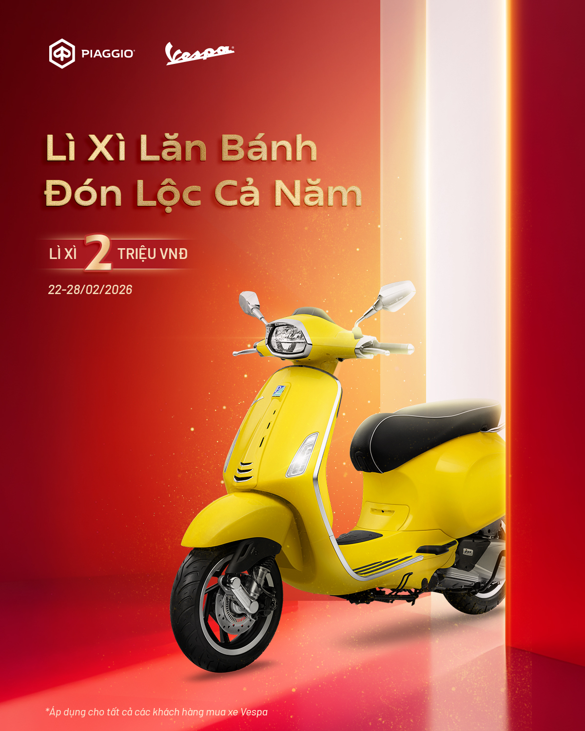 Khách hàng mua Piaggio Liberty trong thời gian 25.12.2025 – 13.02.2026 được hỗ trợ lên tới 3 triệu đồng, đồng thời tham gia chương trình bốc thăm trúng thưởng tổng giá trị hơn 6 tỷ đồng, với cơ hội sở hữu xe Piaggio Liberty Gen Z và nhiều quà tặng giá trị khác.Đến Piaggio Mùa Xuân để trải nghiệm và tham gia ngay.